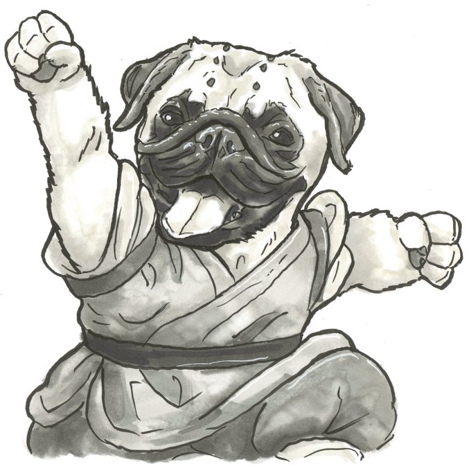 Inktober day 8: Krillin Pug! @inktober #inktober #inktober2022 #inkdrawing #drawing #ink #dragonball #dragonballz #krillin #puppy #pug #dog #pet #monochromatic #illustration #lineart #fanart #art #artoftheday #artwork #traditionalart #artist #utahartist
