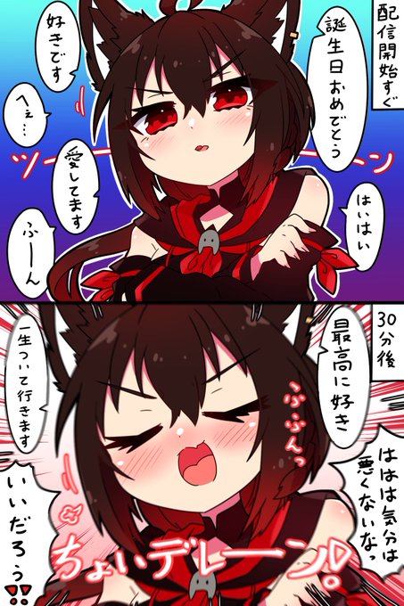 黒ちゃんハピバ🎉㊗️🎉 めっちゃ遅くなってしまったけど、お誕生日中には間に合ったからセーフ🙃 …改めて見ると、数秒後に、すこん部くんがケーキべシャァしそうで怖い絵になったわね。 立体感とか遠近感ってどう出すの← #絵フブキ #KUROFOXBDAY