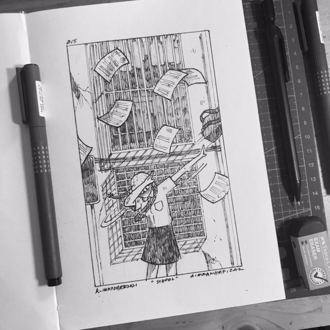 day 15: school 🪄 wooseok and hui in class, humph! 🙅🏻♂ #k_inktober2021 #pentagonfanart #inktober #펜타곤 @CUBE_PTG