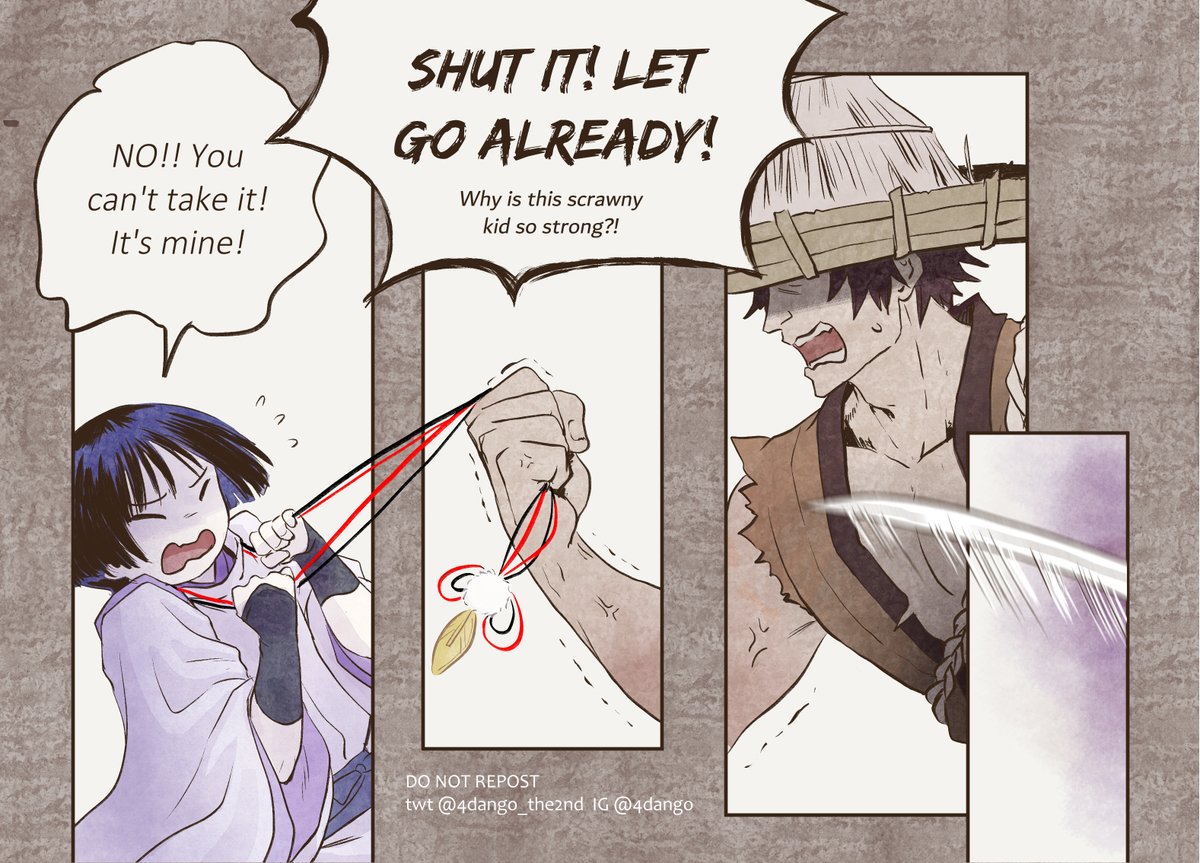 I decided I needed to draw some light-hearted so here's more #KabukimonoTaleOfTatarasuna [8] Didn't colour the last page bec I ran out of energy lol rip