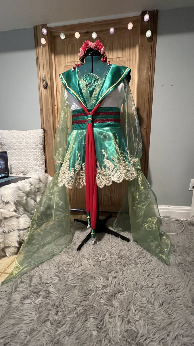 The main body is done, I do have to make minor adjustment to the outer skirt embroidery as it’s tilted on one side but she basically done. Time to dye the socks and add some fasteners to keep shit from falling. #kagomecosplay #wip #cosplay