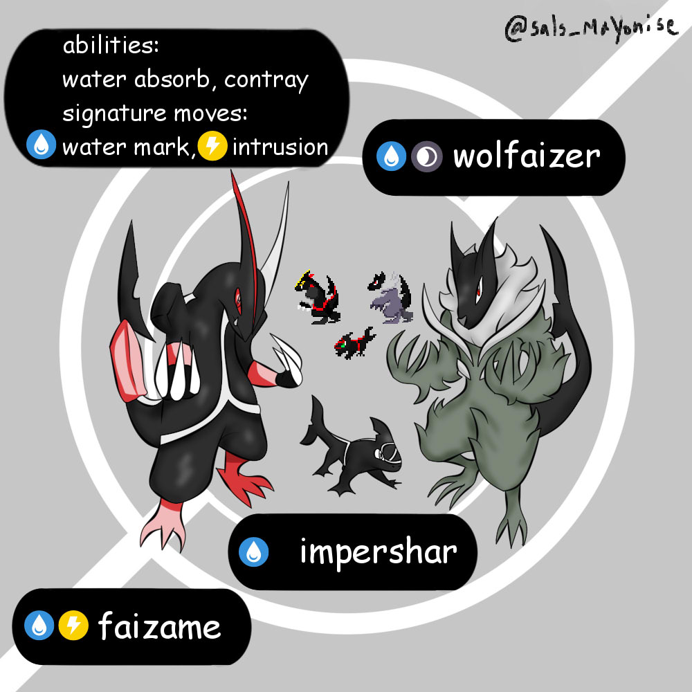 the new entries, impershar, faizame (naturally) and wolfaizer (with night stone) with shiny version #art #fanart #digitalart #pokemon #pokemonfanart #kamenrider #kamenrider555 #kamenriderfaiz #tokusatsu #fakemon