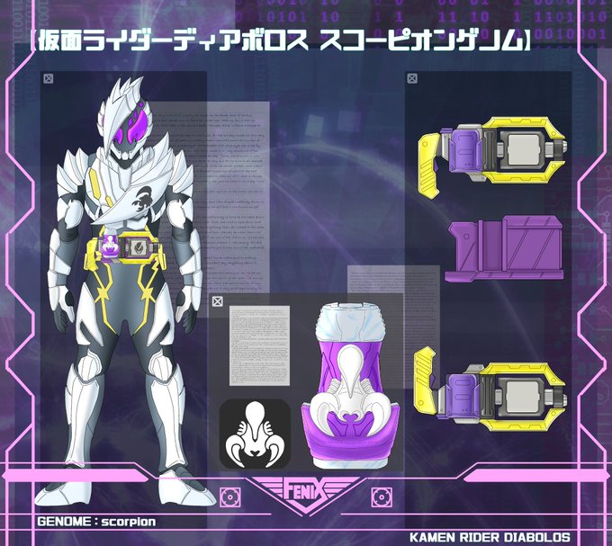 仮面ライダーディアボロス 【スコーピオンゲノム】 『Index! Flex! Rider complex! 仮面ライダーディアボロス!』 #カラフル画集 #仮面ライダーリバイス #FENIXゲノム研究所 #kamenriderreviceWar