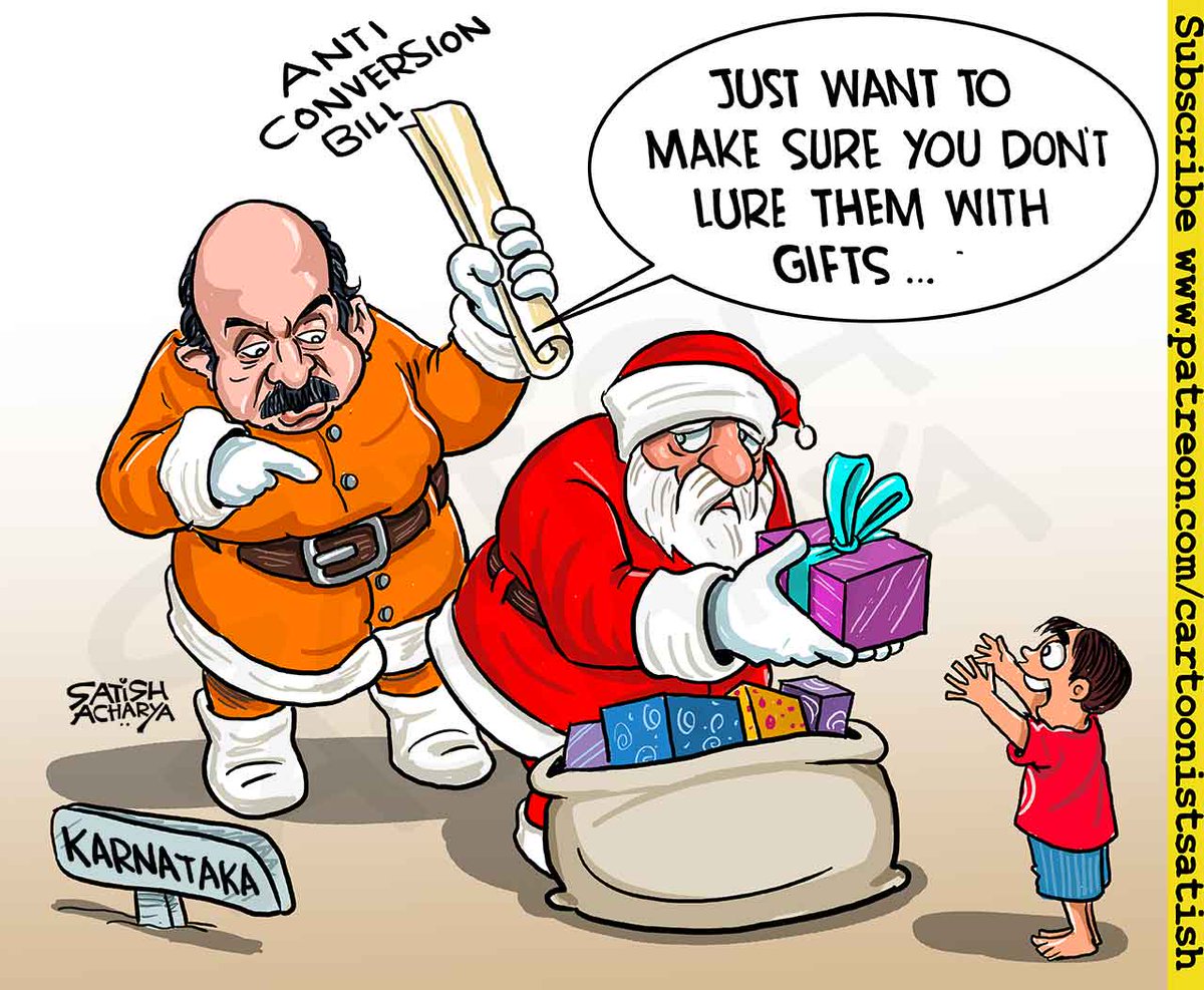 Fake news & smear campaign against free bus ride for women in Karnataka. @TheSouthfirst cartoon. #Karnataka