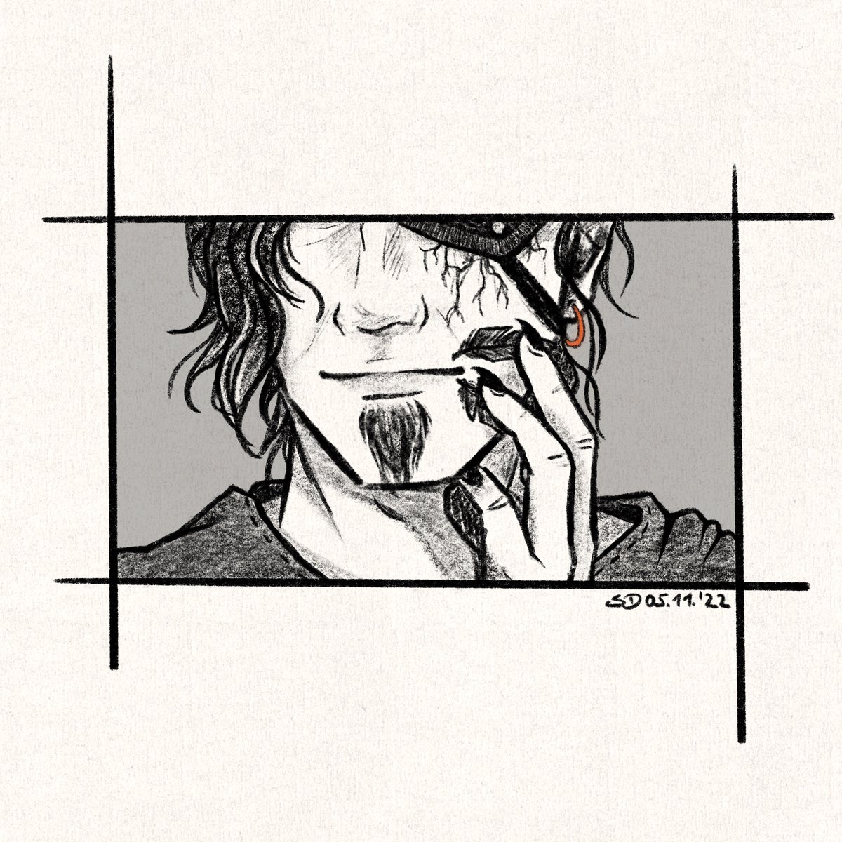 "Nur für einen Moment bleibt ihm das Nachbild einer flüchtigen Berührung, Flügelschlag aus Asche unter die Haut gebrannt." Aftermath of a kiss - quick sketch after having feels for a headcanon 🖤 #KassnaDraws #SchwarzeWasserSvetozar #DnDArt