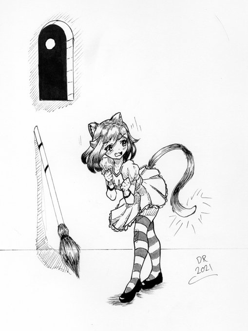 This was a weird thing I did for an art challenge group; in the middle of inktober. Yeah, I drew two things this evening. #animeart #traditionalart #KawaiiGirlNFT #arttwt #artistontwittter #artmoots #inktober2021 #inktober #cat #witchtober #witch #neko