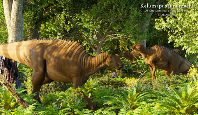 Kelumapusaura machi is a genus of saurolophine hadrosaur from the Late Cretaceous Allen Formation in what is now Patagonia in Argentina. researchgate.net/.../358834727_…... nationalgeographicla.com/.../una-nueva... #Kelumapusaura_machi #Kelumapusaura #hadrosaurid #paleoart #dinosaur #paleontology