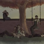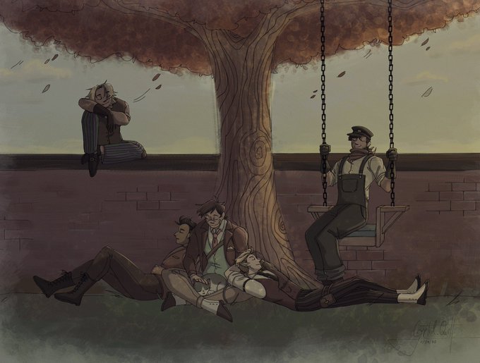 create mod gang having a little rest under keralis’s tree :) #hermitcraft #zedaphfanart #bdoubleo100fanart #goodtimeswithscarfanart #tangotekfanart #keralisfanart