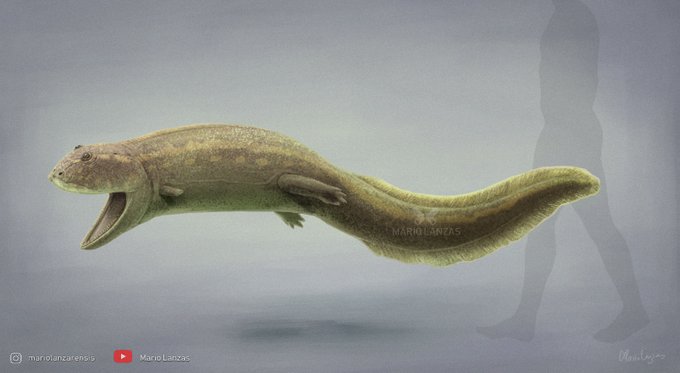 CRASSIGYRINUS. was an early tetrapod that lived in the Carboniferous (video featuring many other animals: youtu.be/_yhAJiJ5wRs) that lived in what is now Scotland #crassigyrinus #caboniferous #paleoart #bigmouth #kermit