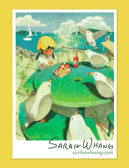 It's #KidLitArtPostcard day again! I'm Sarah, a Korean-Canadian illustrator who loves to draw scenes from everyday life with a touch of magic and humour. 🍟sunhawhang.com 🍟Picture books, graphic novels & covers