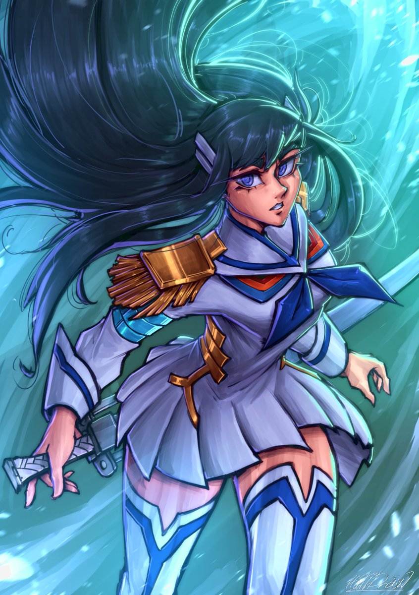 One of the Kill la Kill prints I will also be taking to the convention! 💙✨️ . #killlakill #matoiryuko #kiryuinsatsuki #blumenkranz