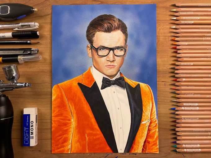 今回は5時間で完成した!こんな早く描けたの初めてだわ✨✨ たくさんの人に見て欲しいです! #色鉛筆画 #キングスマン #TaronDavidEgerton #Kingsman #絵描きさんと繋がりたい