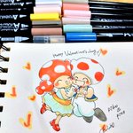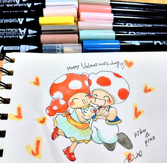 キノピコキノピオカッポー💕 💕Happy Valentine's day💕 100均のマーカーで塗ってみました。 ニュアンスカラーばかりでしたがなんとか #Kinopio #SuperMarioBros #illustration #Valentinesday