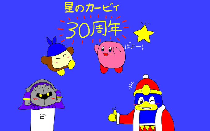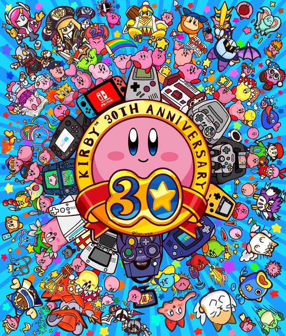 カービィ30周年おめでとうにゃ☁️🌟 #星のカービィ30周年 #Kirby30thFest #カービィのハッピーバースデー #Happy30thBirthdayKirby #kirby #イラスト #illustration #カービィ