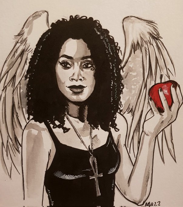 My homage to the incredible series @Netflix_Sandman and a great adaptation. Congrats @neilhimself for all great reviews. Also #kirbyhowellbaptiste has done a great job portraying #death. #Sandman #sandmanfanart @Procreate