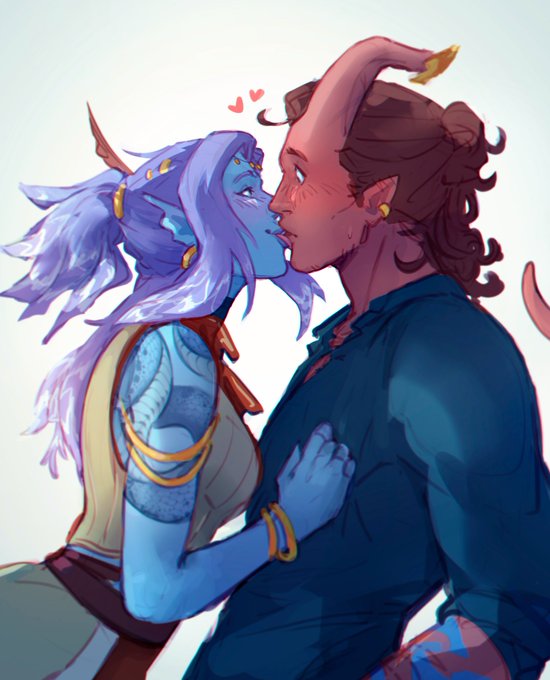 It is Valentine’s Day, so heres some smooches between my D&D character and her man 🥰 #dndart #ttrpg #KissArtFebruary