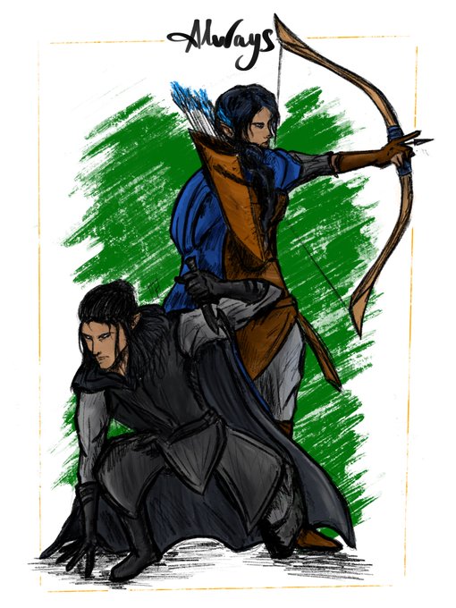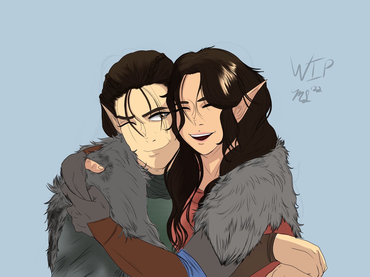 Listening to Kith and Kin, and I truly can’t get enough of them. @VoiceOfOBrien @LauraBaileyVO @mariekeyn 🖤💙 #criticalrole #criticalrolefanart #kithandkin #vaxildan #vexahlia