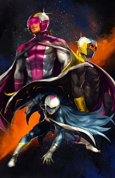 Drew the entire (canon) Starlight Brigade to mark my first year in the SLB Discord server. It's been an absolute pleasure to be there and I have met some truly lovely people. #starlightbrigade #twrpband #knightsofthelighttable #ArtistOnTwitter