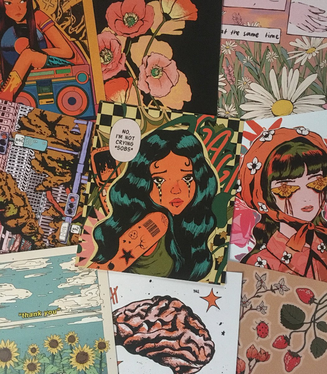 HELLOOO !! just posting some art prints i'll be selling this weekend! 🍓see you at #komiket2022! 🐞 9am to 7pm - table # 154 - centris elements QC