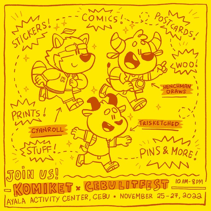 Hello friends! @cyanroll and I will be at Ayala Activity Center for Komiket x Cebu LitFest 2022 + we'll be bringing some @trisketched merch as well ✨ See you around! ❤️ #komiket2022 #KomiketxCebulitfest
