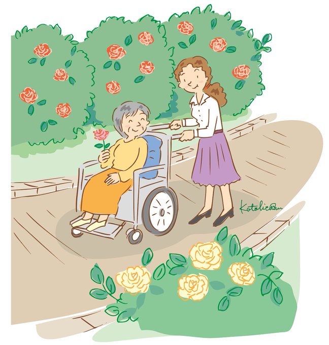 これもだいぶ前に介護系冊子に描いたやつだけど、この頃は楽に描いてたよな こんな絵最近描いてない てか テイストの幅の広さに結構無茶振りされても面白がって応えてた #イラスト #drawing #illustration #artwork #KotolichanDrawin #adobeillustrator