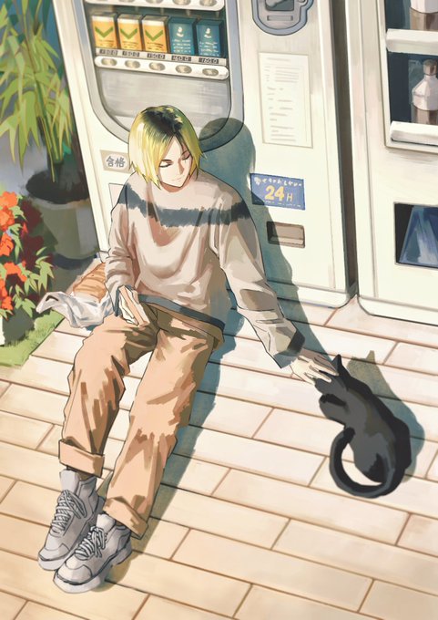 情人节特辑第二弹 【年轻的教父和他的情人黑猫】 第一弹:黑猫🐈⬛ 第二弹:教父🐈 少年教父在审视着他的黑猫 #kurootetsurou #kozumeKenma #kuroken #ハイキュー!! #Haikyuu