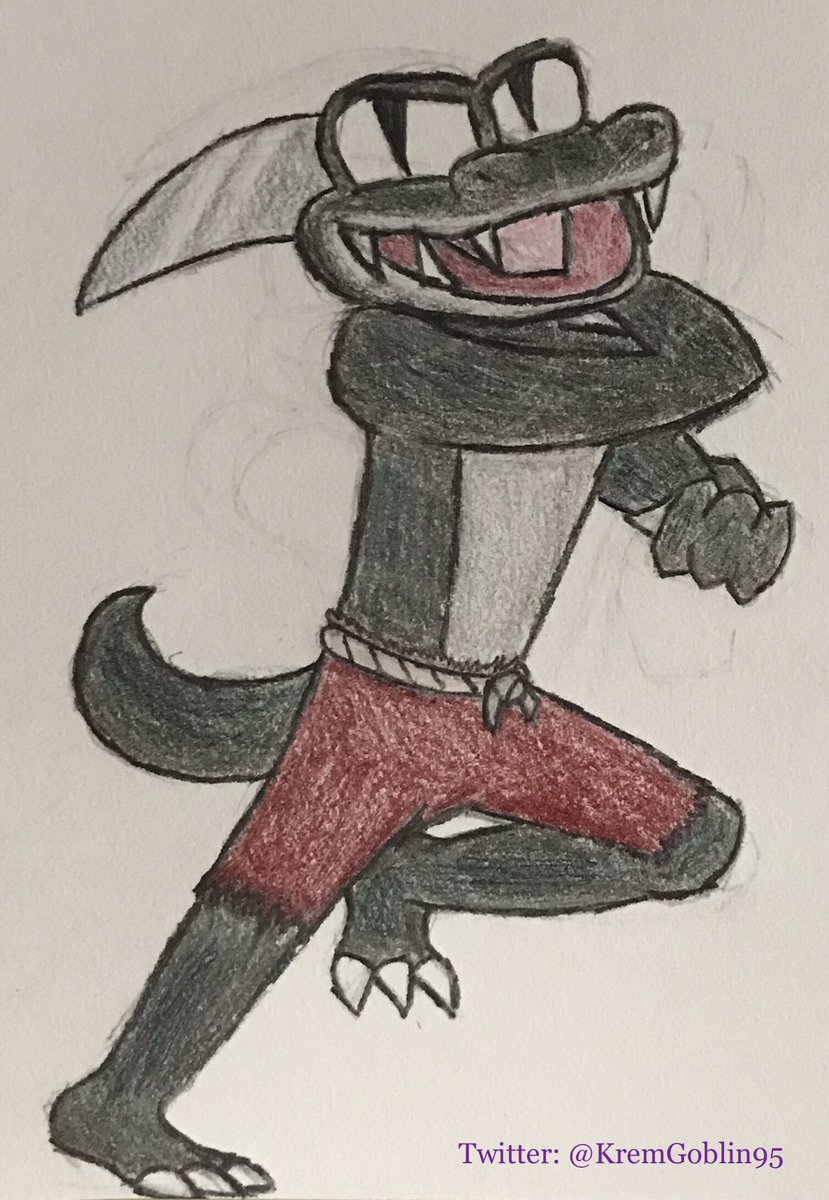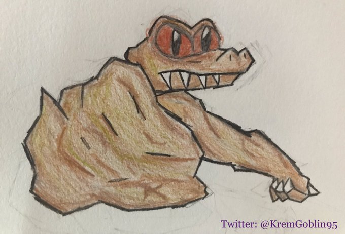 Today’s #Kremling: Krook! Not much to say this time except yes, I did in fact decide to give him irises. Thought it’d add to the personality, one of the best things about the #Kremlings, after all! 😁 #DonkeyKong #DonkeyKongCountry #DKC #DKC2 #traditionalart #ArtistOnTwitter