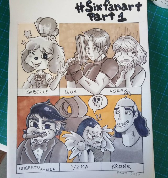Six fanarts part 1 #sixfanarts #fanart #yzma #kronk #animalcrossing #leon #ashley #re4 #residentevil #umbertosmaila #lefolliedellimperatore #art #traditionalart #illustration #color #blackandwhite #chibi #mart #myopinion #sketchbook #ink Copic # promaker #manga #anime #videogame