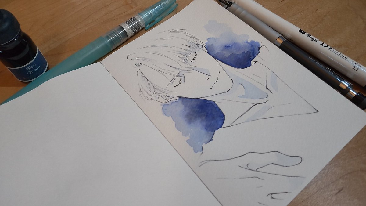 あなろぐおえかき🖌️ 若ヴィはやっぱりこの色を使いたくなる…… #inktober #inktober2022 #Inktober_PerfectChallenge #kuretakeinktober2022_giveaway 呉竹フィス水筆ぺん 大 セリース