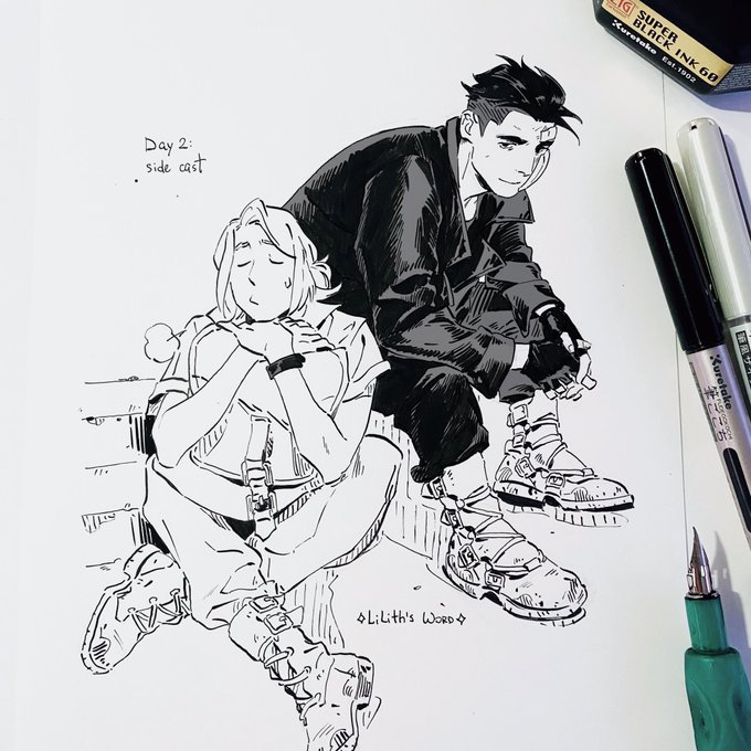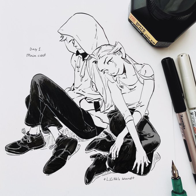 ✦ Day 3 of OCtober: boss✦ Ezra and Maria, his trusty secretary. While he makes the decisions, she makes sure that everything runs smoothly in the organisation and no one slacks off. Survives on excessive amounts of coffee. #kuretake_inktober