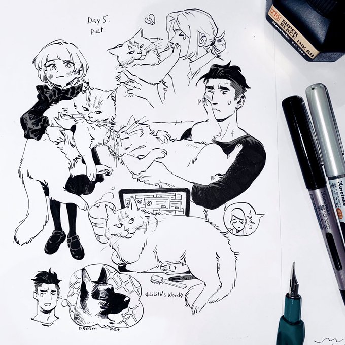 ✦ Day 2 of OCtober: side cast✦ Thomas and Degu (in front), his adoptive brother. They’re complete opposites in many ways, and yet they’re inseparable! Tools: ZIG cartoonist super black ink 60, fudegokochi fine and extra-fine brushes. #kuretake_inktober