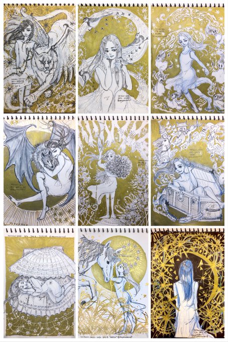 #kuretake_inktober2022 #kuretakeinktober2022_giveaway #inktober 9日間参加できました!完走してみたい。お題難しかったけど考えるの楽しかったです。 使用画材 pigmaミリペン 0.05 呉竹 金筆ペン 呉竹 白筆ペン uniball signo 金