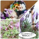 お庭の紫色のフレンチラベンダーが咲きました🌼お友達のお家のピンクのお花も〜😊💕今年も #夢みるひつじのアレンジメント 作りました🐑 涼し気な夏のお花 #フレンチラベンダー #紫陽花 #向日葵 の3種。 #クイリングアート #ペーパーフラワー #ペーパークラフト #KuruKuruQuilling
