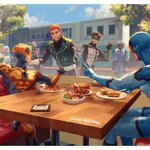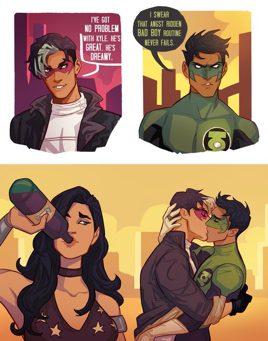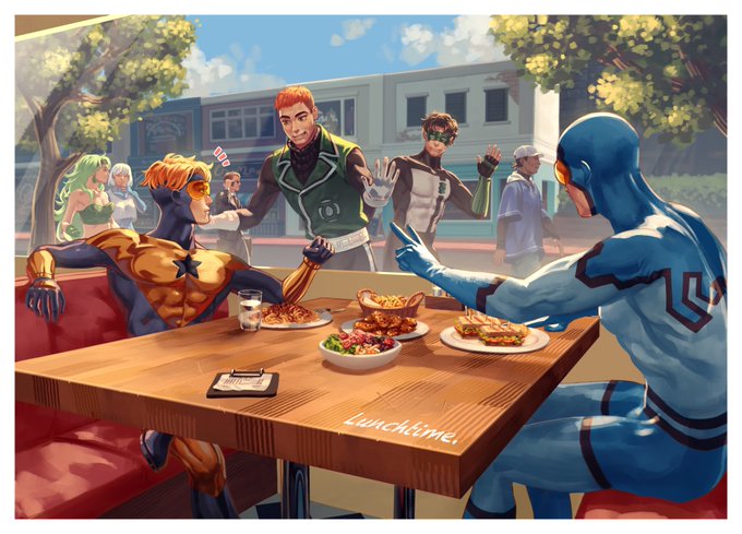 Loser pays for lunch. #BoosterGold #BlueBeetle #GreenLantern #Kylerayner #GuyGardner #dccomics 抱歉刪掉重發了幾次…
