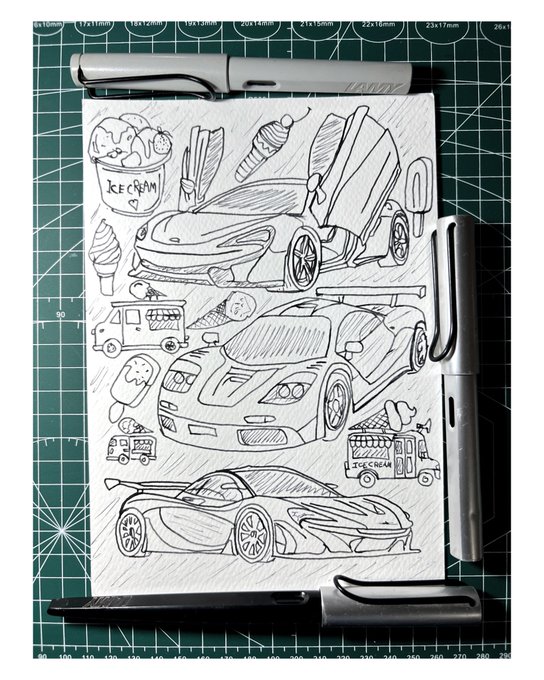 The word today for the #Inktober series is “#TEMPTING”. McLaren as a brand and their product are always such tempting propositions se we had to go with that and add some tempting ice cream trucks. @inktober #inktober2022 #ink #lamy @lamyindia #McLaren #mclarenF1