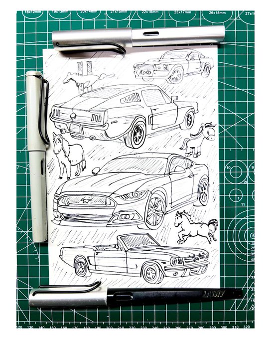 The word today for the #Inktober series is “#PONYTAIL”. The only car that came to my mind was the legendary #Ford #Mustang nicknamed the pony car. @inktober #inktober2022 #ink #fordmustang #lamy @lamyindia