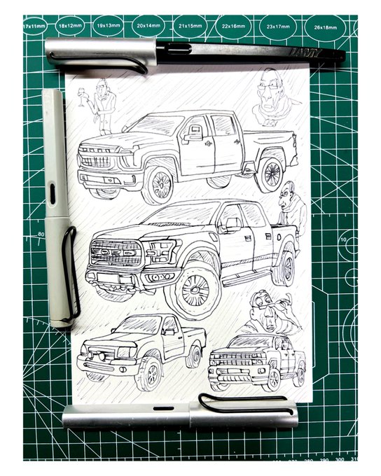The word today for the #Inktober series is “#EGO”. American pickup trucks 🛻 are the perfect ego boost while driving down the road. We had to add in Anton Ego from the #Pixar movie #Ratatouille. @inktober #inktober2022 #ink #lamy @lamyindia