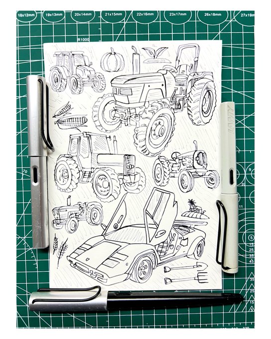 The word today for the #Inktober series is “#FARM”. Finally the last word of the month we head to the farm and check out some tractors and the roots of the #Lamborghini brand. @inktober #inktober2022 #ink #lamy @lamyindia