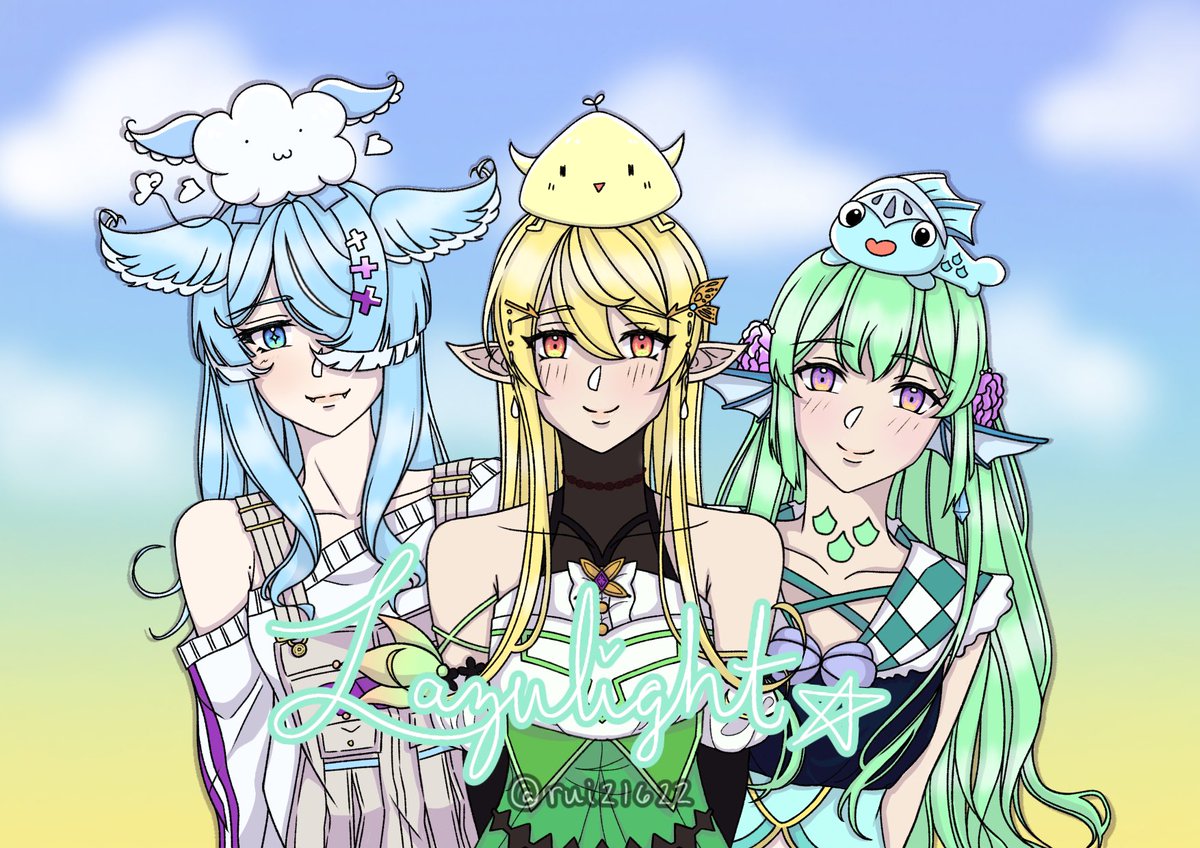 Happy 1 Year Anniversary LazuLight and NijiEN!! 💙💛💚 Though I’m quite late, I wanted to make something to celebrate and thank LazuLight for bringing so much happiness and laughter into my life this year 🥰❤️✨ #Lazu1ightAnniversary #pendorART #PomuPaint #Finanart #LazuLight