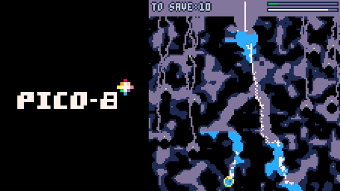 "Flooded Caves", un jeu Pico-8 dans lequel on doit sauver des gens coincés dans une grotte lors d'une inondation ! 💧⛏️ ▶️ youtu.be/ZHZUrF_e1h4 #ludumdare #LDJAM #LD50 #ludumdare50 #gamejam #pico8 #pixelart