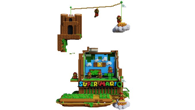 My game scene is my chilhood game @SuperMario_UK from @nintendouk @akamaidev #gamescenecontest #LDJAM #magicavoxel #voxelart #voxels #mario #supermario #FANART