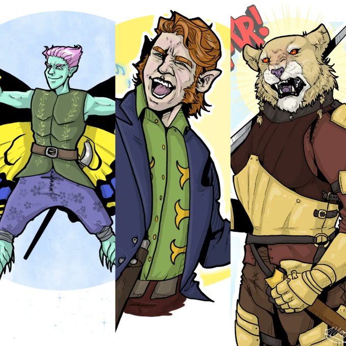 My current D&D characters; Tea Leaf, Conlan, and Apexa~ #art #artist #illustration #illustrator #drawing #fairy #rogue #dungeonsanddragons #dnd #fantasy #fantasyart #digitalart #dungeonsanddragonsart #dndart #leonin #halfling #bard #paladin #comicart