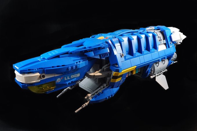 今年もしれっと参加します #LEGO宇宙船杯2022 宇宙漁船「天海丸」 宇宙に彷徨う「スペースイカ」を捕獲する漁船。大気圏突入後はバーニアが外れ、"タダノギョセン形態"となる。 リプに続く