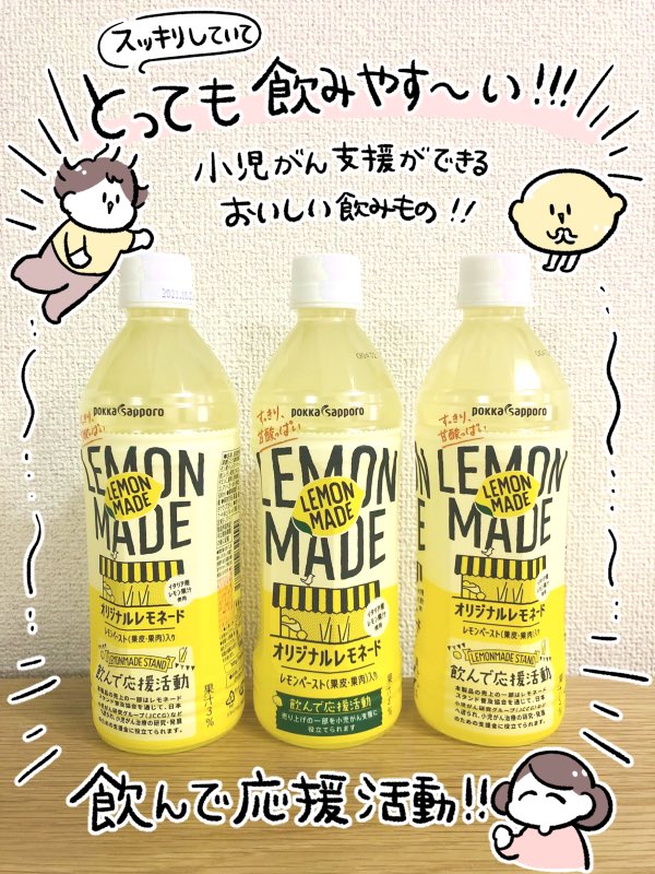 リニューアルした #LEMONMADE 頂きました! レモネードと小児がん治療寄付の関係について初めて知りましたが、素敵な文化ですね☺️ #国際小児がんデー にあわせ、RT数×10円の小児がん治療への寄付を行うそうです(リツイートは引用元をお願いします✨) sp-mall.jp/shop/g/gP1-WK3… #PR twitter.com/pokkasapporo/s…