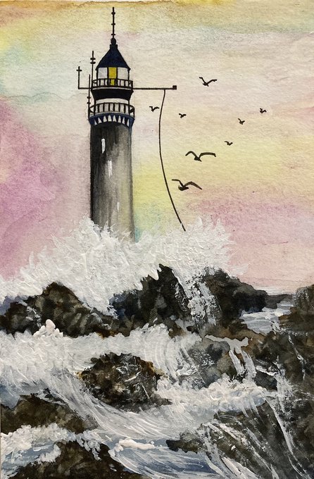 New #lighthouse painting. The storm……#watercolorpainting #art #handmade #watercolor #ocean #waves