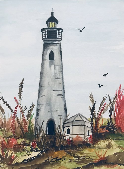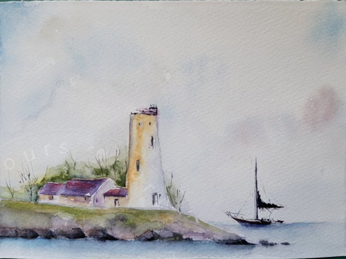 The late afternoon sunlight, warm as oil, sweet as childhood. – Stephen King #watercolours #watercolor #seascape #lighthouse