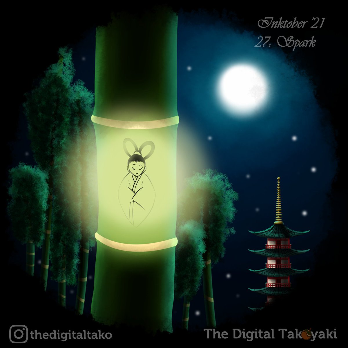 Inktober 27: Spark The Shiny Child 光り輝く子 #Inktober #inktober2021 #illustrations #digitalart #イラスト #アート #Ilustración #artedigital #イラスト好きな人と繋がりたい #japanesculture #culturajaponesa #literarura #literature #kaguya #かぐや姫 #kawaii #かわいい #竹取物語