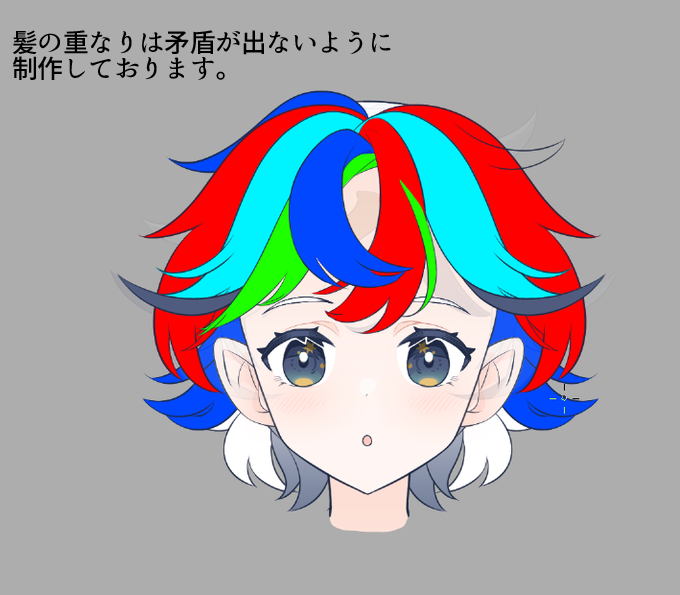 男性キャラクターの髪の毛のパーツ設計に悩んでる人いたんでうちの子の分離を。 ポイントは、横を向いた時の後ろ横髪で、 これがあると一気に立体感が出る。 #Live2DWIP #イラスト依頼 #LIVE2D依頼