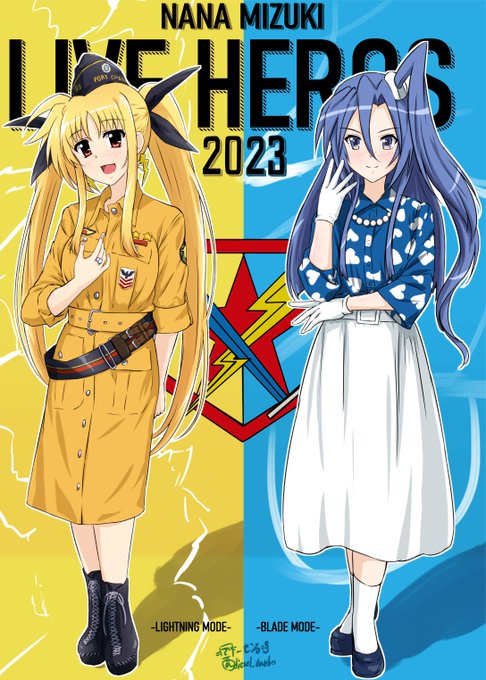 いよいよ本日と明日開催の『NANA MIZUKI LIVE HEROES 2023』たのしみですね~。 -LIGHTNING MODE-と-BLADE MODE-ってやっぱこういうことかなって思いましたので今回のライブキービジュアル衣装をフェイト&翼で描いてみました。 #水樹奈々 #LIVE_HEROES #フェイト・T・ハラオウン #風鳴翼