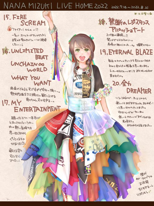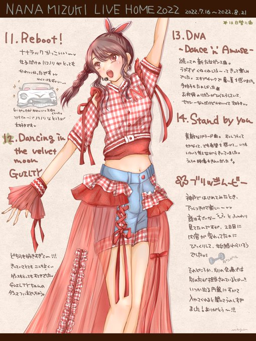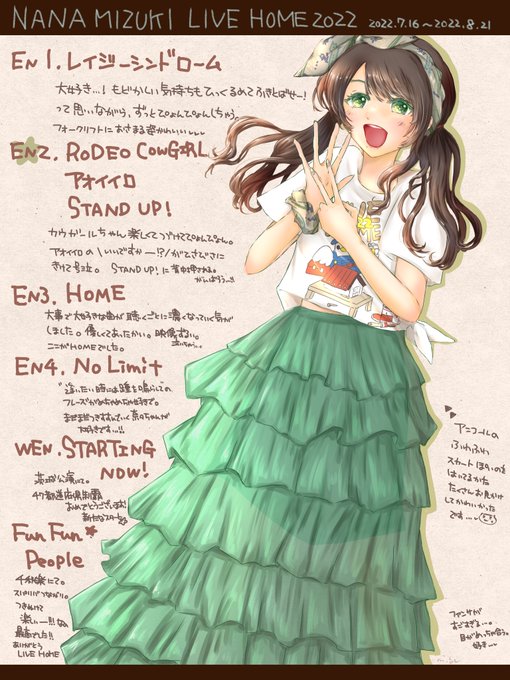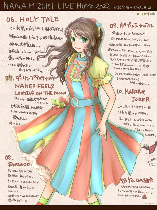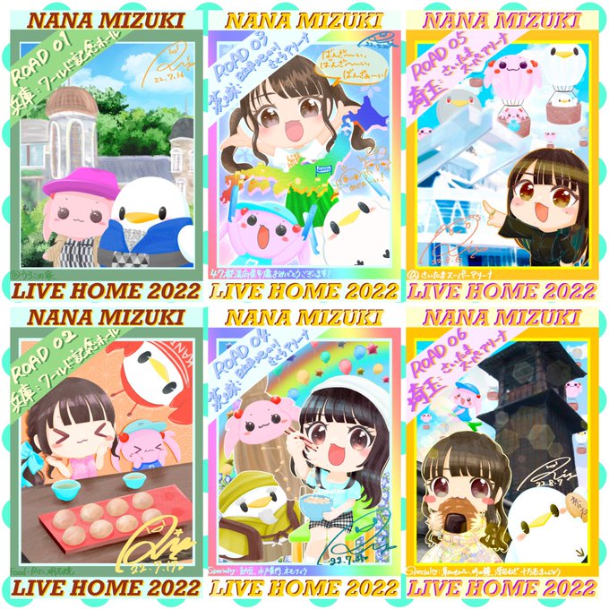 無事帰宅しました〜🏡 LIVE HOMEの開催日に描いたイラストをまとめました( ˊᵕˋ* ) 新作含め過去アルバム、シングルの特典の服を着て、各地の名所&名物を楽しむ旅をしている! というコンセプトで描きましたー!🖌 #水樹奈々 #LIVE_HOME